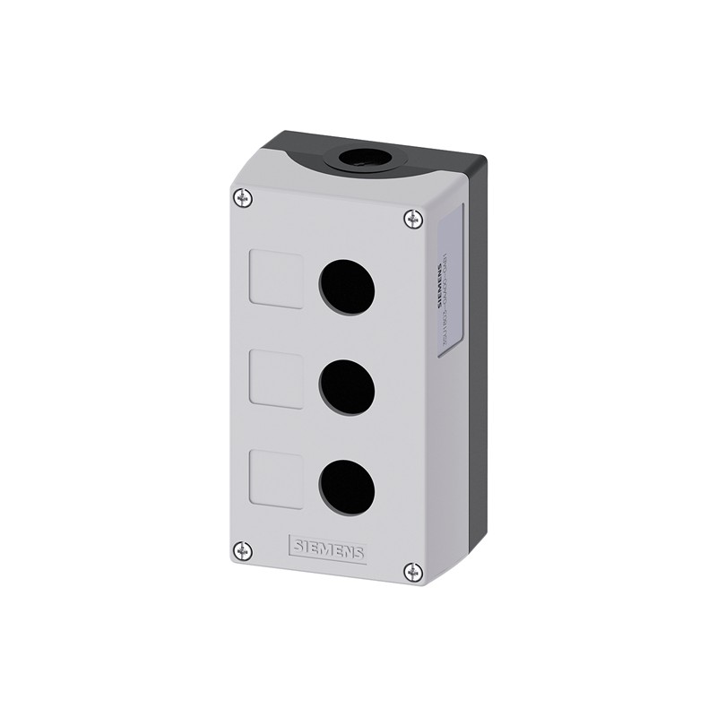caja para aparatos de mando, 22 mm, redondo, caja de plástico, Parte superior de la caja de color gris, 3 puntos de mando de plástico, rebaje para plaquitas de inscripción, sin equipamiento