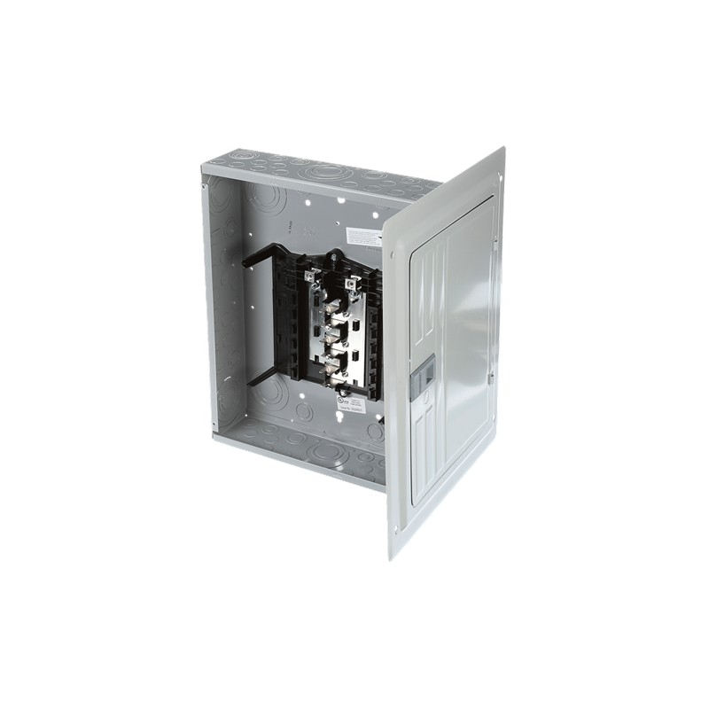 Siemens Low Voltage, variante conectable preparada para neutro, serie Standard de centro de carga ensamblado. Terminal principal con 12 espacios 1 in para un máximo de 24 circuitos. Sistema monofásico, de 3 hilos, de 120/240 V (125 A) 100 kAIC.